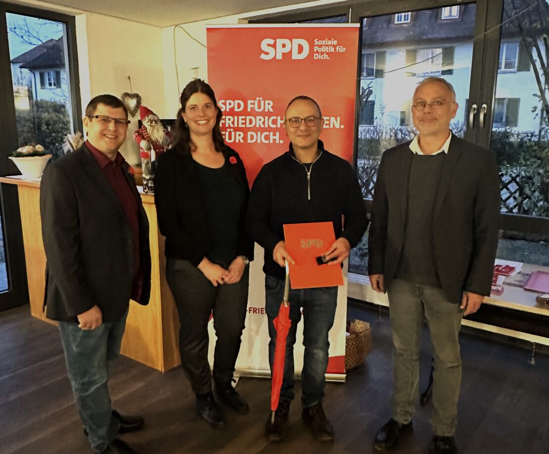 Auf dem Bild zu sehen (v.l.): Jan Hinrichs und Laura Straub (Vorsitzende Orstverein) mit Atilla Ö. Die Laudatio hielt Werner Nuber.